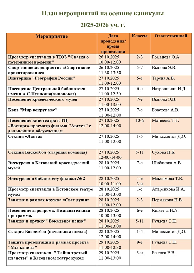 • Расписание занятии ДОО "Кадет" по строевой, тактической и огневой подготовке