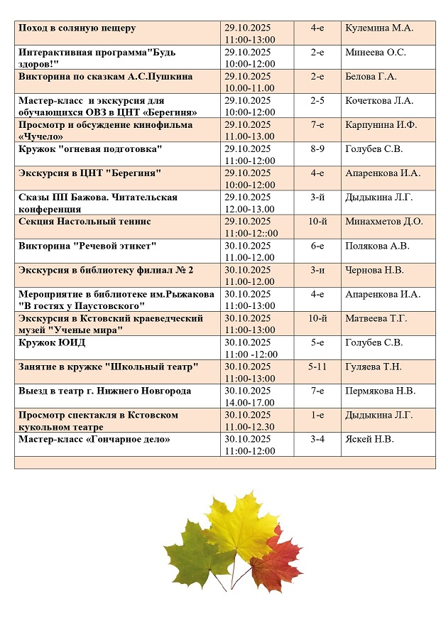 • Расписание кружков обучающихся начального общего, основного общего и среднего общего образования