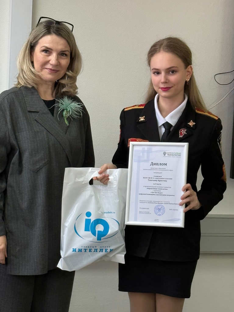 Особые поздравления — Тишчаевой К., кадету 11 «А» класса МАОУ СШ 6, которая под руководством наставников Кузнецова И.Ю. и Суховой Н.Б. заняла 2 место с проектом по созданию чат-бота для кадет!
