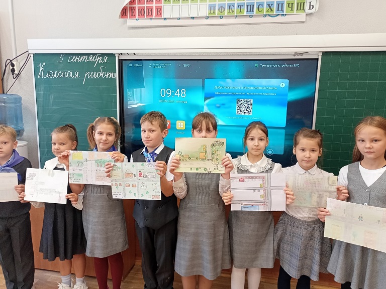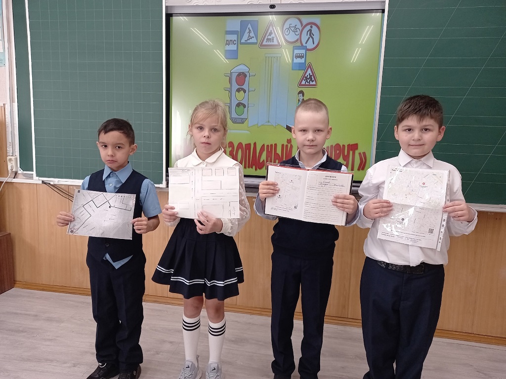 Под руководством классного руководителя ребята разместили готовые схемы в дневниках — теперь безопасный маршрут всегда под рукой!