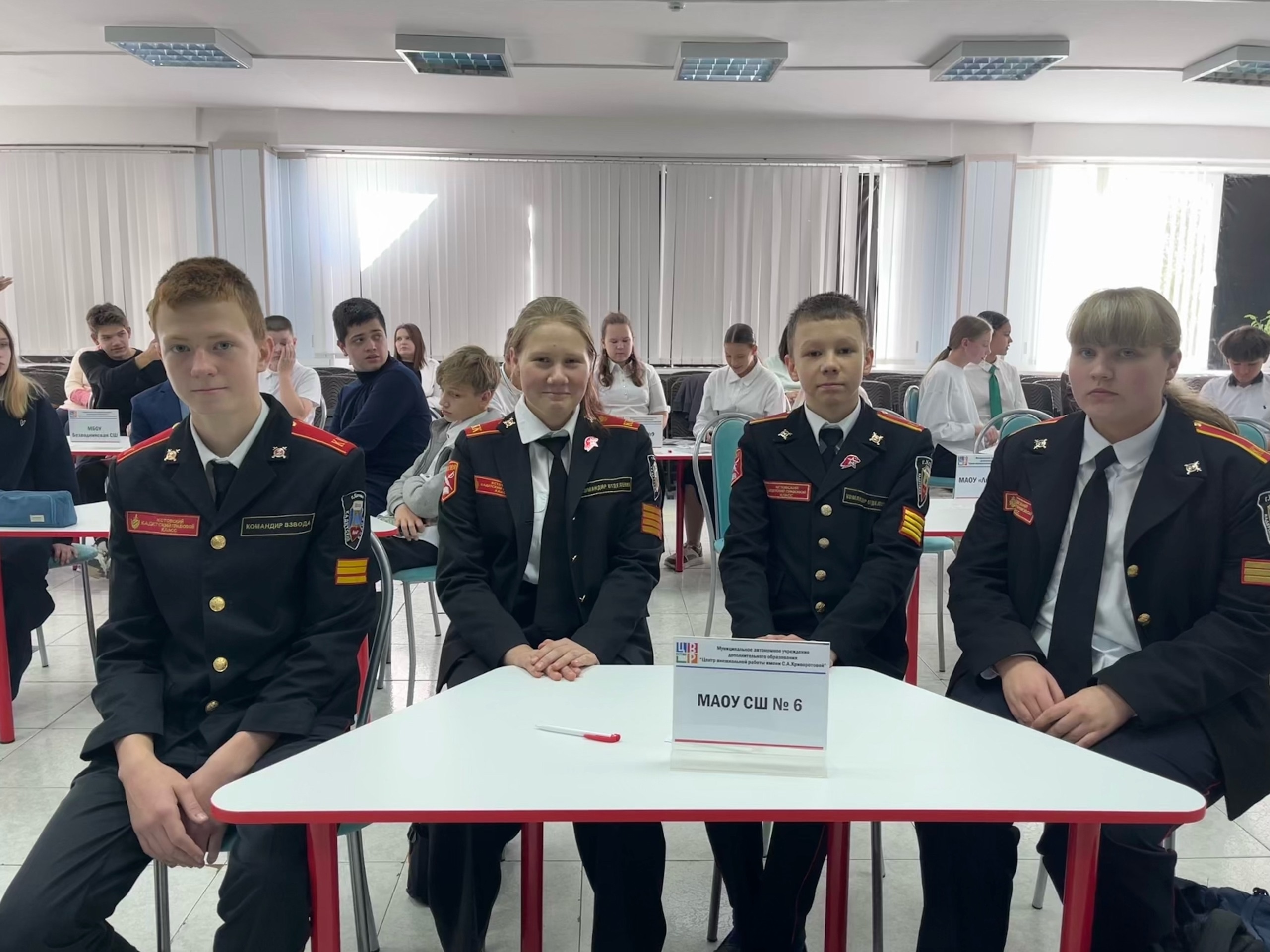 Команду МАОУ СШ 6 представили обучающиеся 8-7 классов: Блинов А., Слатина Д., Февралева В. и Зюзин Р.